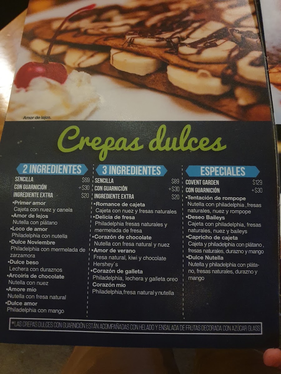 **ABOUT Covent Garden Cafe & Crepas**Nestled in the heart of San Luis Potosi, Covent Garden Cafe & Crepas offers a delightful culinary experience, celebrated for its exquisite crepes and Crepizzas. Customers rave about the attentive service and quick meal preparation, especially during less busy hours. Highlights include flavorful green chilaquiles paired with rich Americano coffee and an indulgent crepe topped with ice cream. The inviting atmosphere makes it perfect for gatherings, though diners are advised to expect a lively crowd in the evenings. Covent Garden Cafe & Crepas is an unmissable destination for anyone craving a blend of traditional and innovative Mexican cuisine.